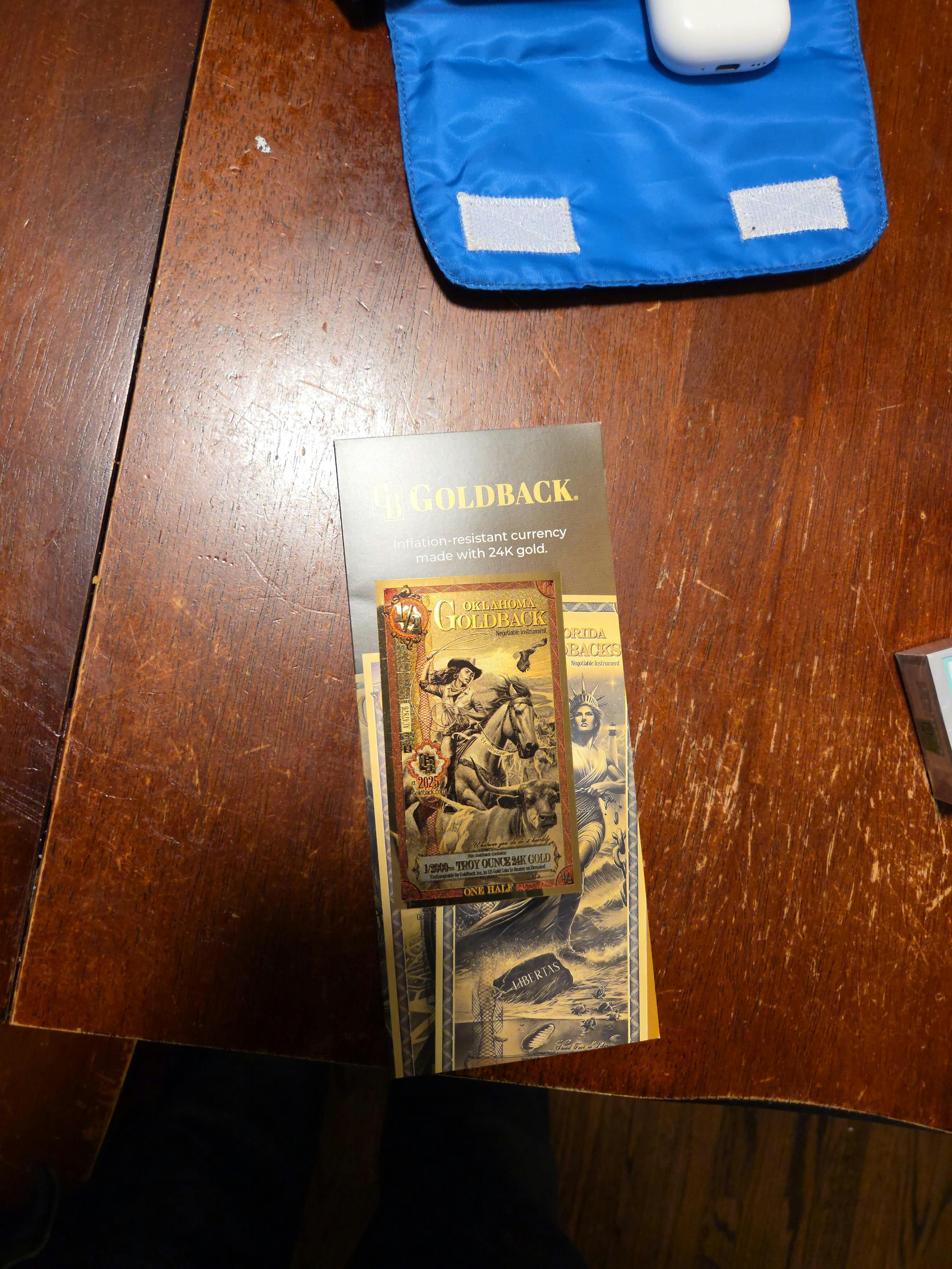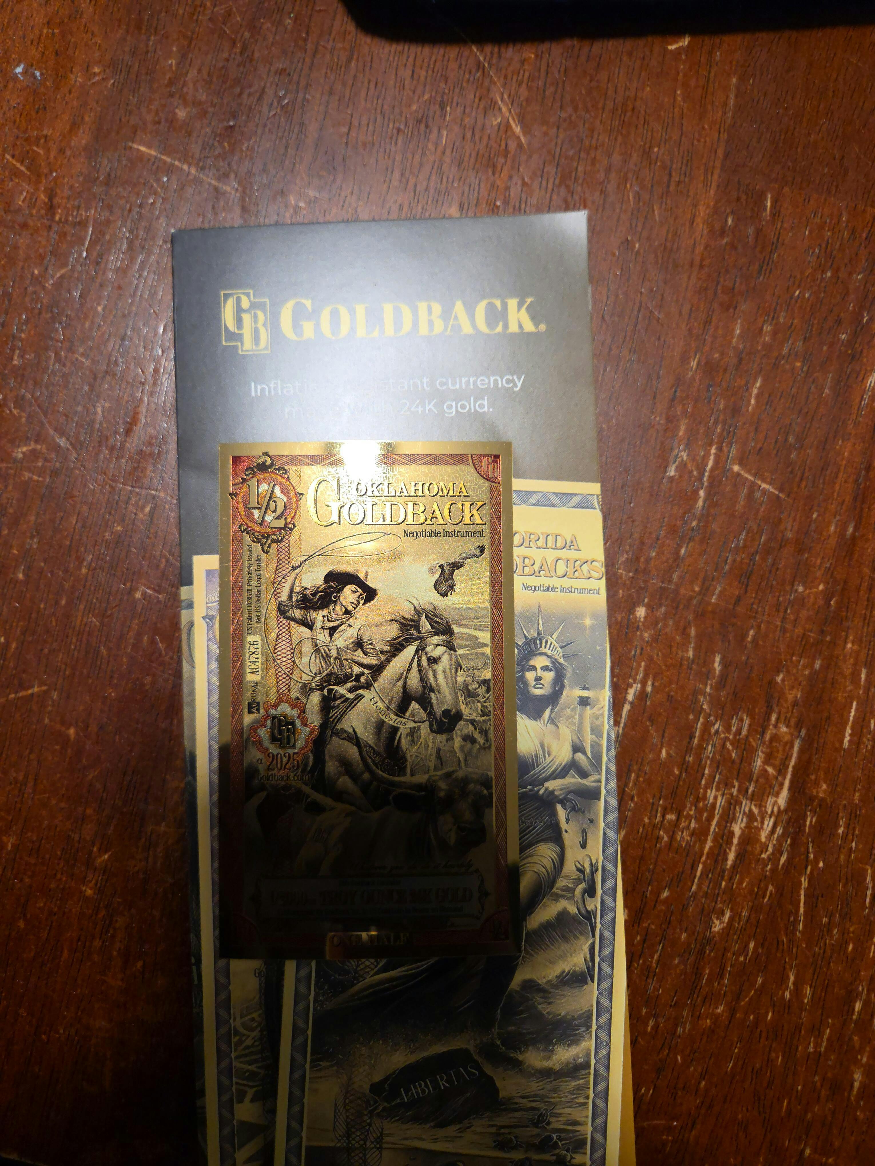 Oklahoma Goldback, 1/2 Goldback, Half Goldback, Oklahoma Collectible, Oklahoma artwork, Oklahoma currency, Gold currency, Gold Collectible, Local currency, Alternative currency, Chisholm Trail, Honor, Honestas