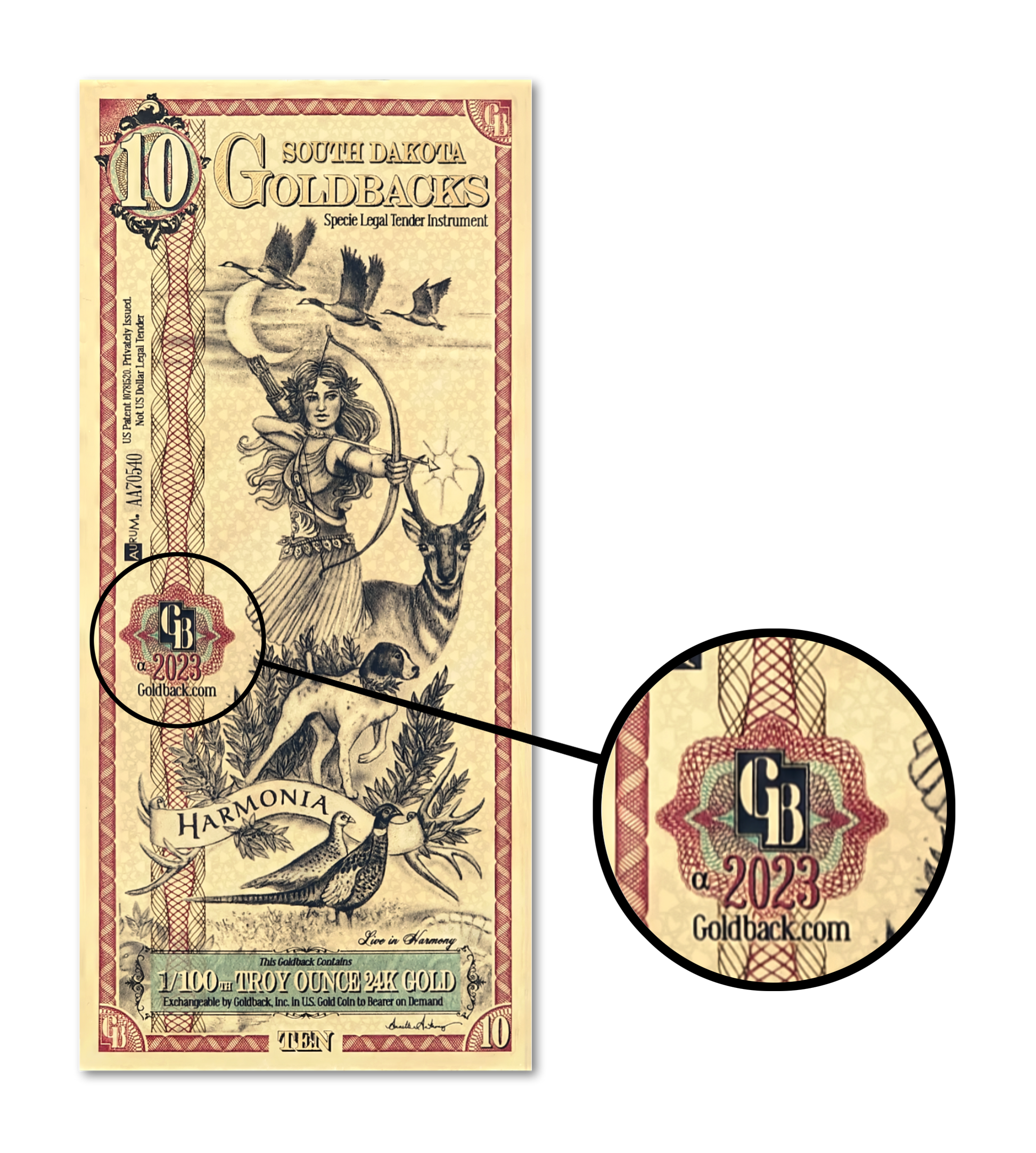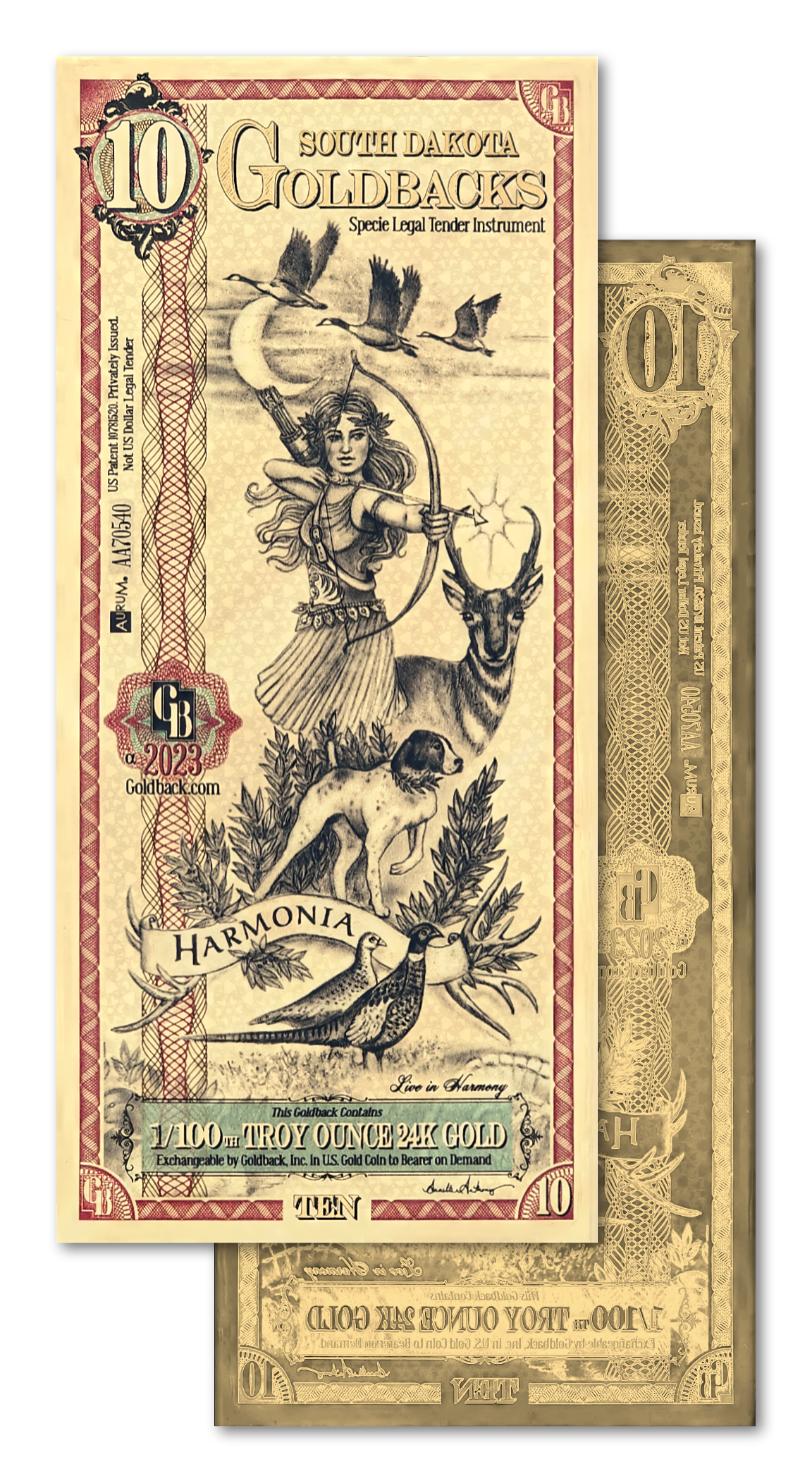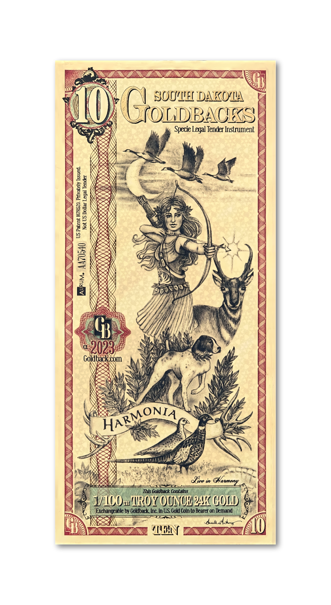 South Dakota Alpha Series 10 Goldback (10GB) – “Harmonia” | 1/100th of a Troy Oz of 24K Gold